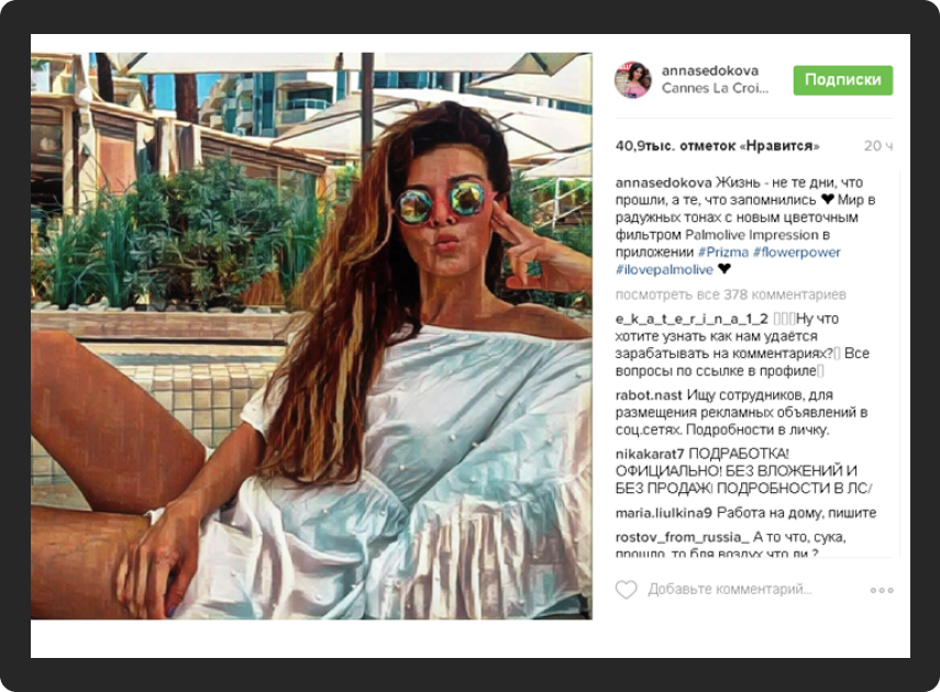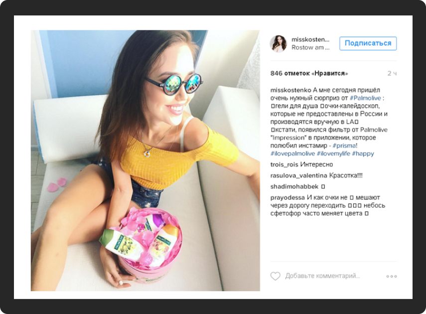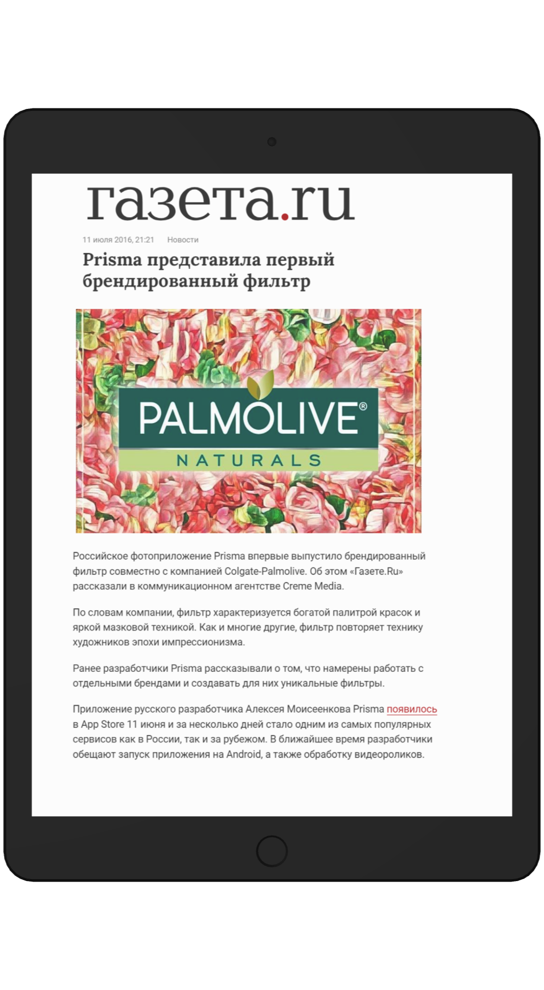 от бренда Palmolive. Фильтр обрабатывает фотографии